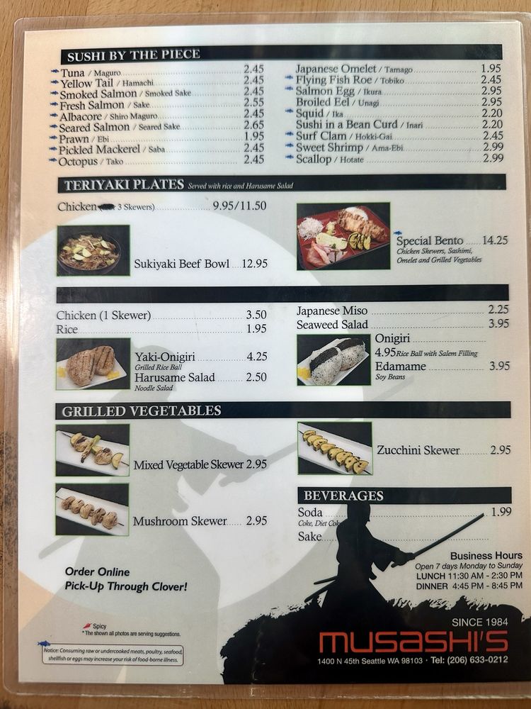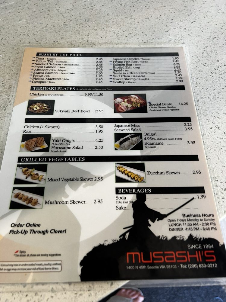 Welcome to Musashi’s, a local favorite sushi spot located in Seattle, WA. This cozy restaurant offers a variety of fresh and delicious sushi options for both lunch and dinner. Customers rave about the generous portion sizes and high quality fish served here. The Chirashi bowl is a standout dish, packed with a variety of fresh seafood. Prices are praised for being great value for the quantity of fish offered. The casual dining experience, friendly service, and relaxed atmosphere make this a go-to spot for sushi lovers. Whether you’re looking for a quick takeout lunch or a relaxing dinner, Musashi’s has got you covered. Don’t miss out on the Nigiri Lunch Plate or the Dinner Sushi Nigiri for a satisfying and tasty meal.